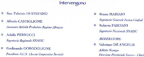 Si ringraziano entrambe le organizzazioni. L'una, la FESICA, sindacato del settore privato, per aver reso possibile la nascita "in sicurezza" del nostro Sindacato in un epoca in cui si negava, nell'ambito sindacale del settore pubblico, persino l'esistenza degli ispettori di cooperative. L'altra per aver sposato la nostra causa,