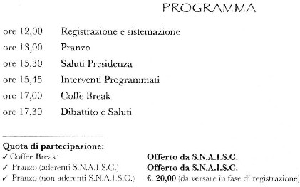 Vi comunico che lo SNAISC si é arricchito di un nuovo strumento d'informazione il "BLOG SNAISC" raggiungibile all'indirizzo